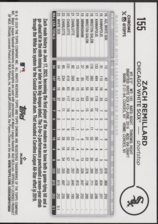 Zach Remillard 2024 Topps Chrome Green Ray Wave Refractor RC 22/99 #155