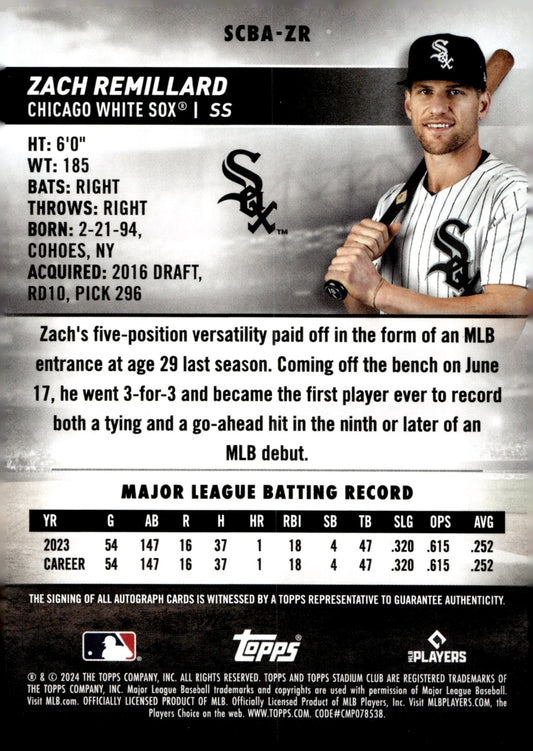 Zach Remillard 2024 Topps Stadium Club RC Auto #SCBA-ZR