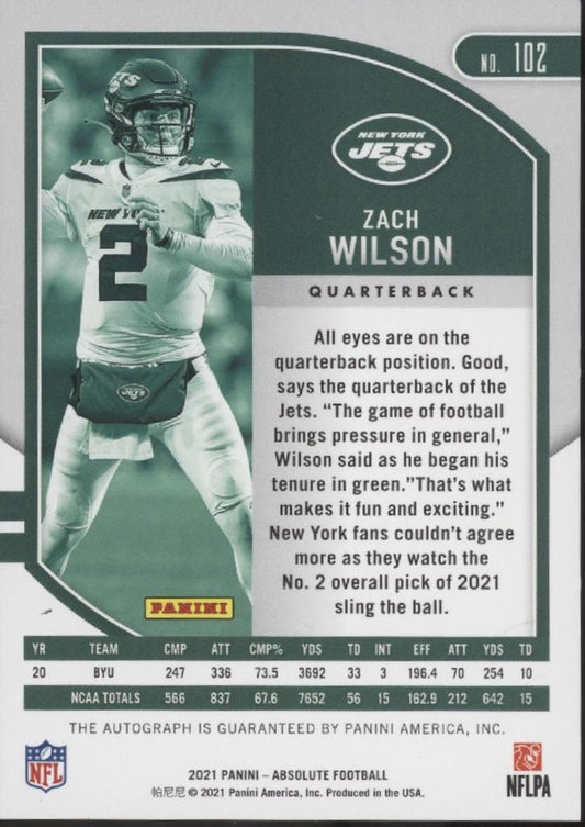 Zach Wilson 2021 Panini Absolute Blue RC Auto 29/35 #102