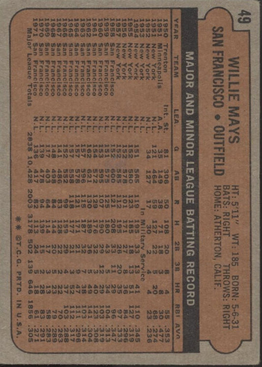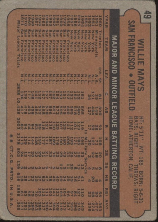 Willie Mays 1969 Topps Deckle Edge #33 San Francisco Giants VG #2