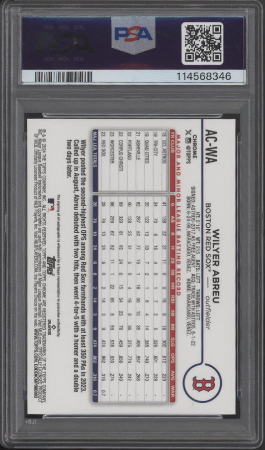Wilyer Abreu 2024 Topps Chrome Update Red Refractor RC Auto #AC-WA PSA 10
