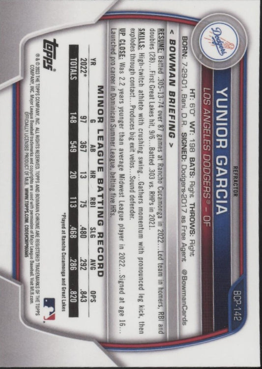 Yunior Garcia 2023 Bowman Chrome Lunar Glow Refractor #BCP-142
