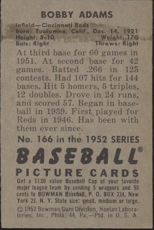 Bobby Adams 1951 Bowman #288 Cincinnati Reds VG Marked