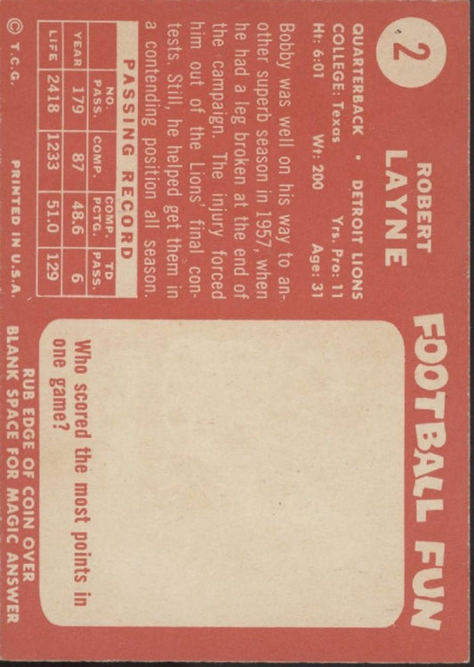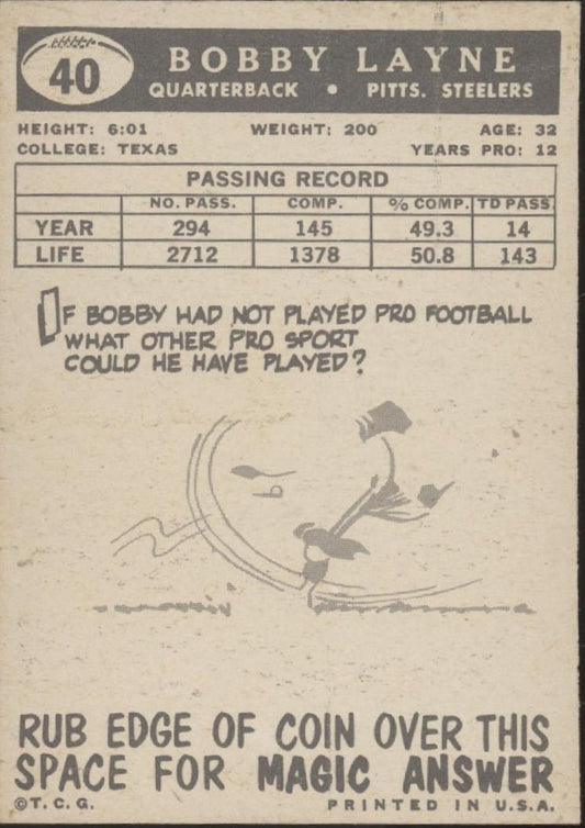 Bobby Layne 1960 Topps #93 Pittsburgh Steelers EX