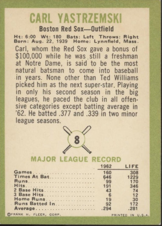 Carl Yastrzemski 1963 Fleer #8 Boston Red Sox VG