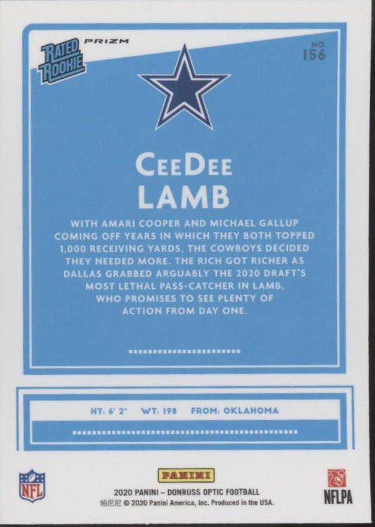 CeeDee Lamb 2020 Panini Donruss Optic Rated Rookie Blue Scope Prizm RC #156