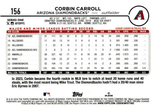 Corbin Carroll 2024 Topps Chrome Allen & Ginter #87