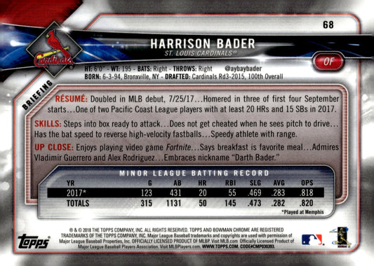 Harrison Bader 2018 Bowman Chrome RC #68