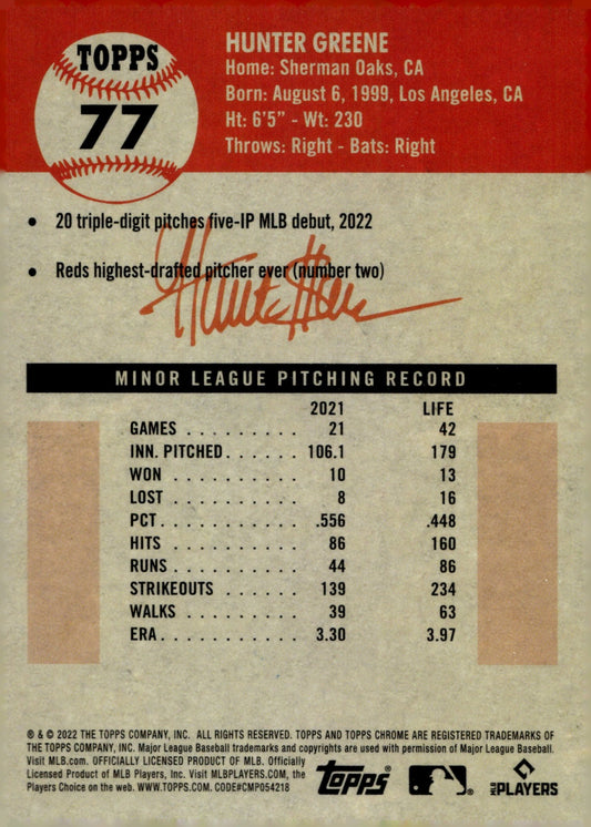 Hunter Greene 2022 Topps Heritage Rookie Performers RC #RP-14