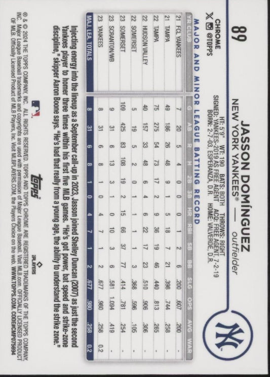 Jasson Dominguez 2024 Topps Chrome Purple Sonar Refractor RC 035/275 #89