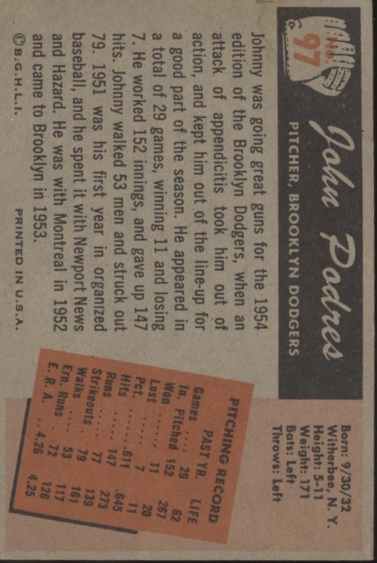 John Podres 1955 Bowman #97 Brooklyn Dodgers VG