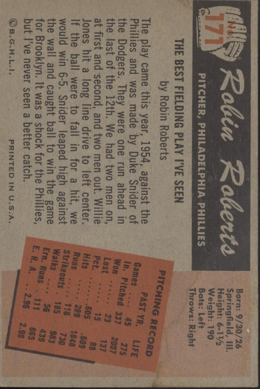 Robin Roberts 1955 Bowman #171 Philadelphia Phillies VG