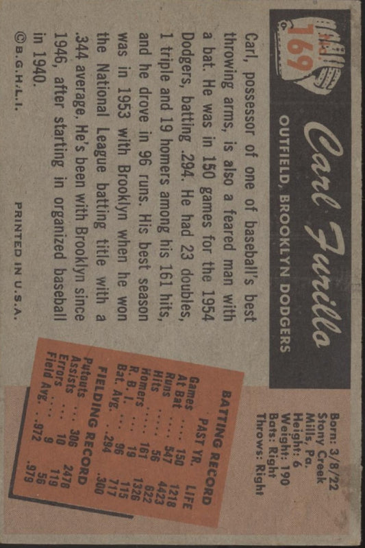 Carl Furillo 1955 Bowman #169 Brooklyn Dodgers VG #2