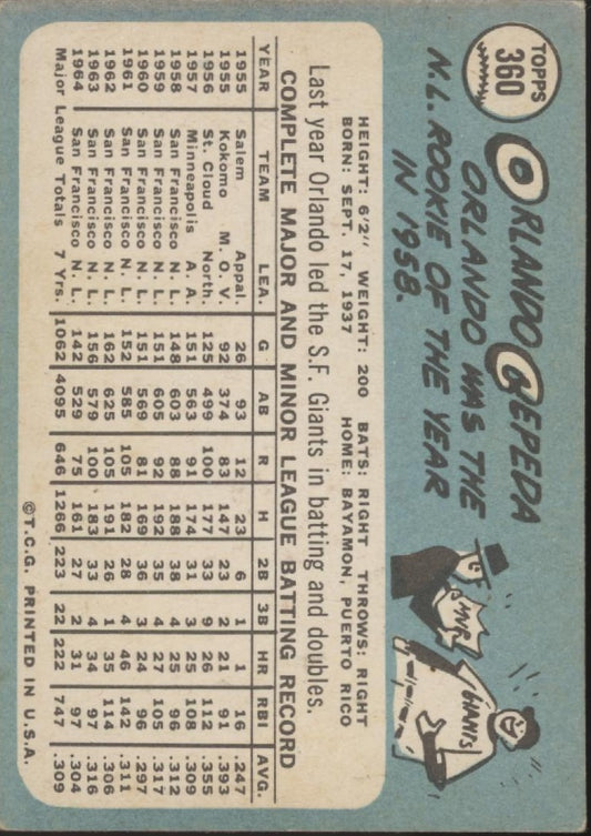 Orlando Cepeda 1965 Topps #360 San Francisco Giants VG #2