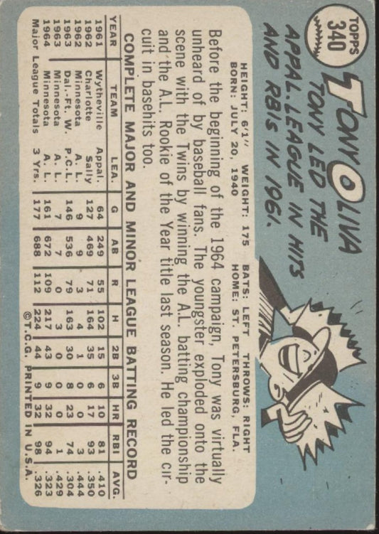 Tony Oliva 1965 Topps #340 Minnesota Twins VG-EX #2
