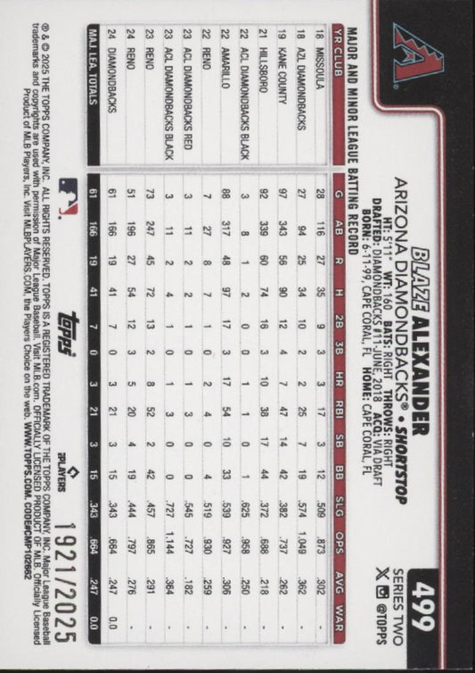 Blaze Alexander 2025 Topps Series 2 Gold 1921/2025 #499