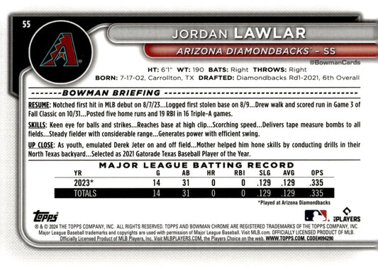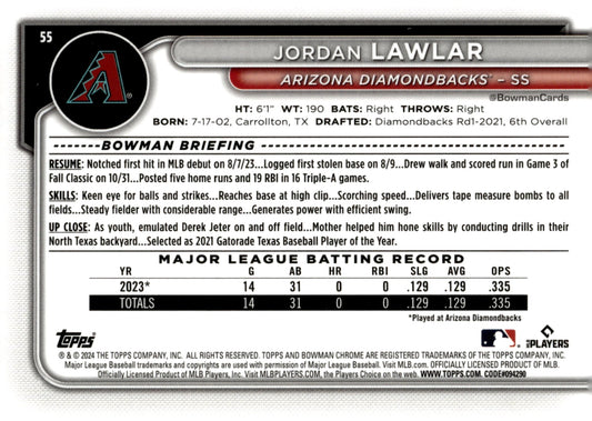 Jordan Lawlar 2024 Bowman Chrome Mojo Refractor RC #55 #1