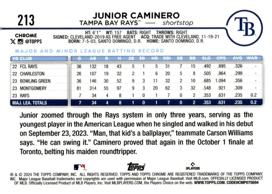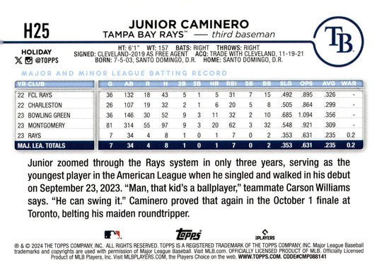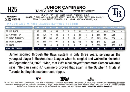 Junior Caminero 2024 Topps Holiday RC #H25
