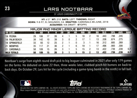 Lars Nootbaar 2022 Topps Chrome Pink Refractor RC #19