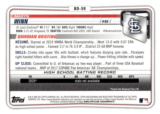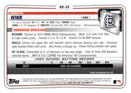 Masyn Winn 2020 Bowman Prospect #BD-59 #4