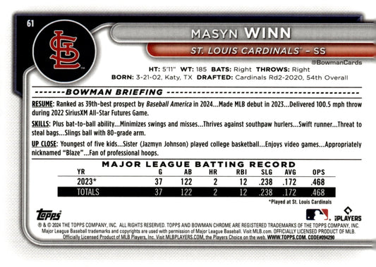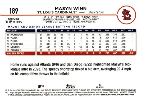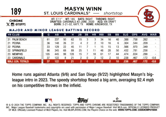 Masyn Winn 2024 Topps Chrome RC #189 #2
