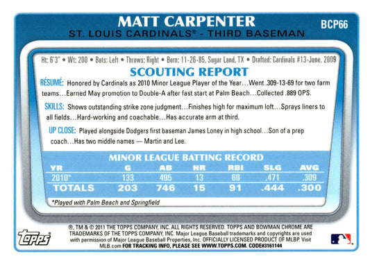 Matt Carpenter 2011 Bowman Chrome #BCP66 #2