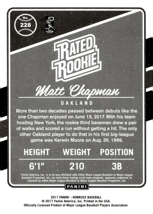 Matt Chapman 2017 Panini Donruss Rated Rookie RC #228