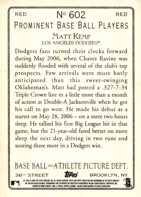 Matt Kemp 2006 Topps Turkey Red RC #602