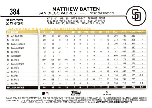 Matthew Batten 2024 Topps Series 2 Gold Foil #384