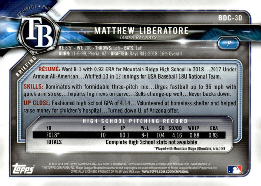 Matthew Liberatore 2018 Bowman Chrome Prospect #BDC-30