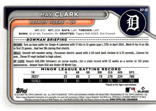 Max Clark 2024 Bowman Chrome Mojo Refractor #BCP-195 #2