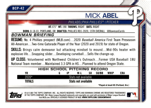 Mick Abel 2021 Bowman Chrome Prospect #BCP-42