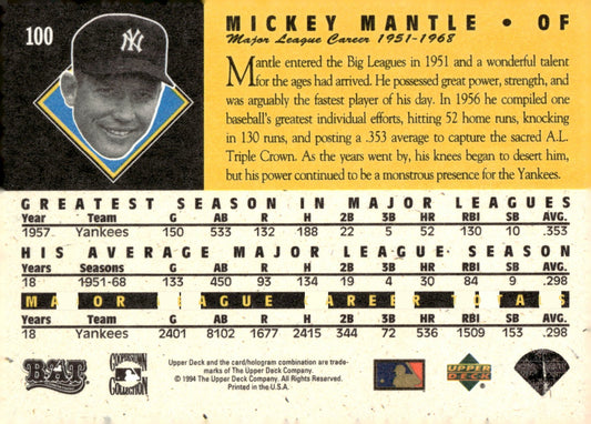 Mickey Mantle 1994 Upper Deck All Time Heroes 125th Anniversary #100