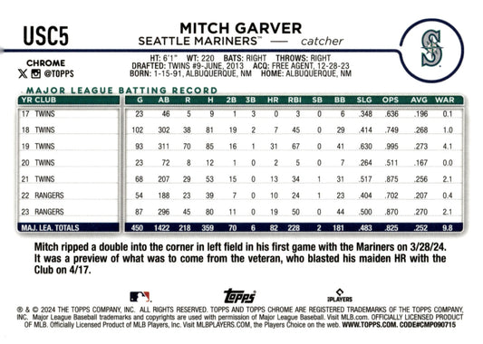 Mitch Garver 2024 Topps Chrome Fuchsia Refractor 124/399 #USC5