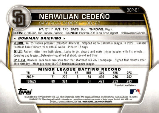 Nerwilian Cedeno 2023 Bowman Chrome Speckle Refractor 189/299 #BCP-81