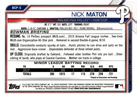 Nick Maton 2021 Bowman Chrome Prospect #BCP-5