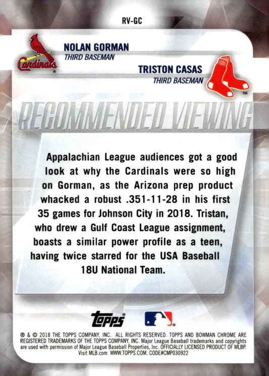 Nolan Gorman / Triston Casas 2018 Bowman Recommended Viewing #RV-GC