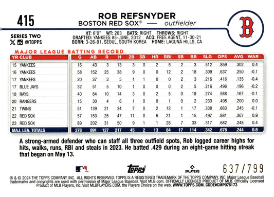 Rob Refsnyder 2024 Topps Series 2 Purple Foil 637/799 #415