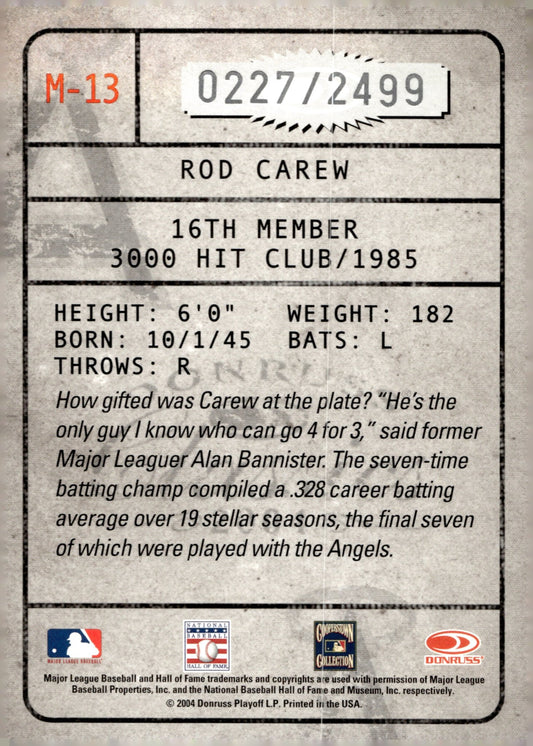 Rod Carew 2004 Donruss Classics Membership 0227/2499 #M-13