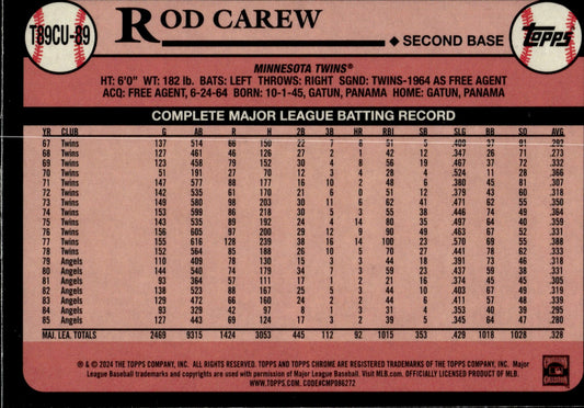Rod Carew 2024 Topps Chrome 35th Anniversary Mojo Refractor #T89CU-89