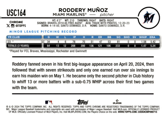 Roddery Munoz 2024 Topps Chrome Aqua Ray Wave Refractor RC 052/199 #USC164