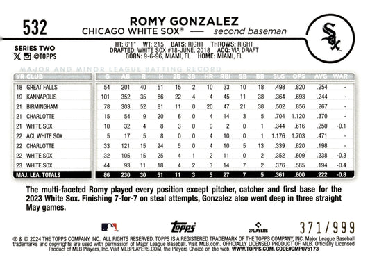 Romy Gonzalez 2024 Topps Series 2 Blue Foil 371/999 #532