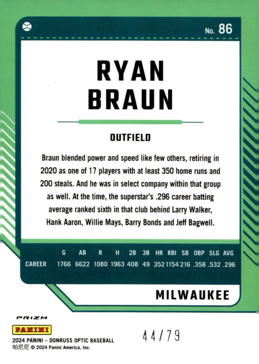 Ryan Braun 2024 Panini Donrus sOptic Pink Lazer Prizm 44/73 #86