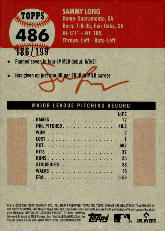 Sammy Long 2022 Topps Chrome Platinum Blue & White Refractor RC 186/199 #486