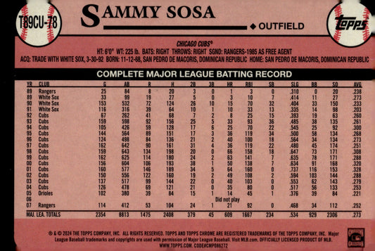 Sammy Sosa 2024 Topps Chrome 35th Anniversary Mojo Refractor #T89CU-78