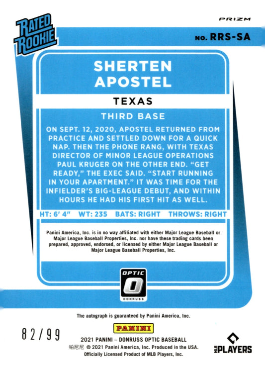Sherten Apostel 2021 Panini Donruss Optic Rated Rookie Mojo Prizm RC Auto 82/99