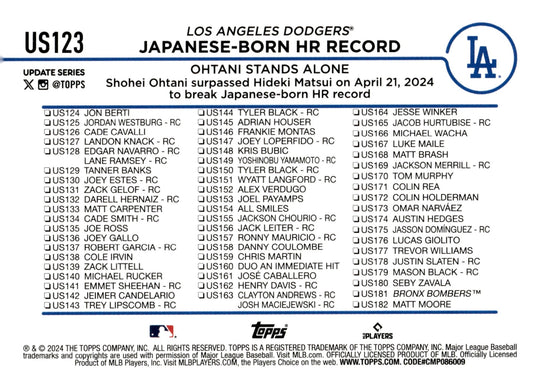 Shohei Ohani 2024 Topps Update Series Japanese Born HR Record #US123 #2
