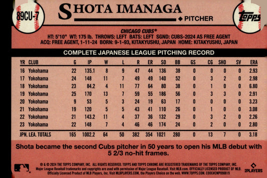 Shota Imanaga 2024 Topps Chrome 35th Anniversary Refractor RC #89CU-7