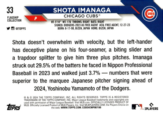 Shota Imanaga 2024 Topps Flagship Collection RC #33