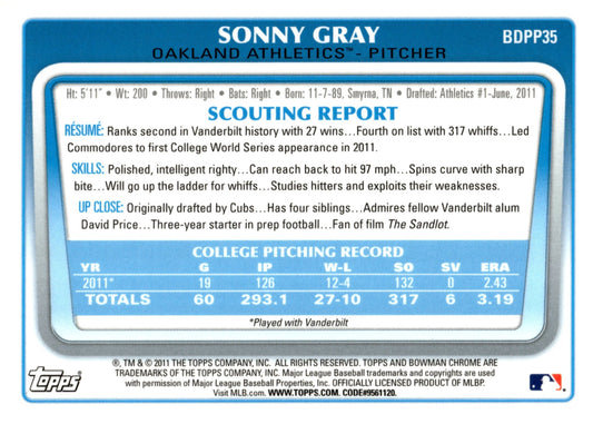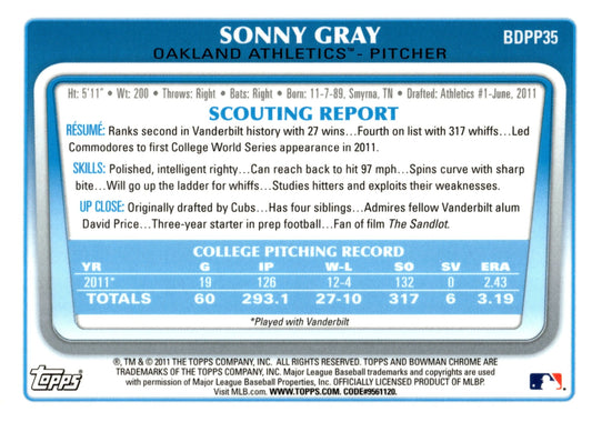 Sonny Gray 2011 Bowman Chrome #BDPP35 #1
